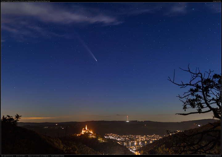 C/2023 A3 (Tsuchinshan-ATLAS) über Marksburg & Rhein