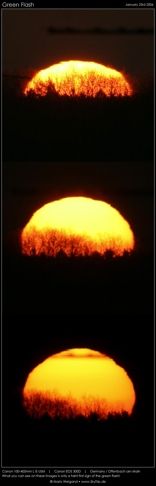 : Auf den Aufnahmen kann man eine leichte Grünfärbung des Sonnenrandes erkennen. Jedoch nur schwach - einen richtigen grünen Strahl gab es nicht.