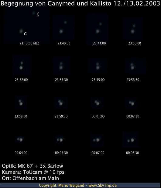 Kommentar: Am 12.02.2003 gab es eine streifende Bedeckung von Kallisto durch Ganymed.