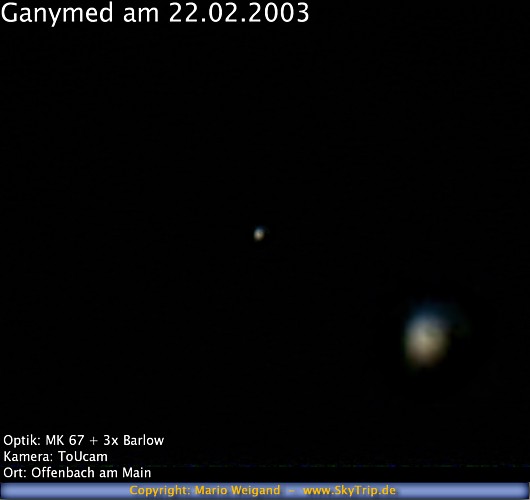 : Ganymed am 22.02.2003 – wieder habe ich versucht Oberflächendetails abzubilden. Leider machte mir das schlechte Seeing einen Strich durch die Rechnung.