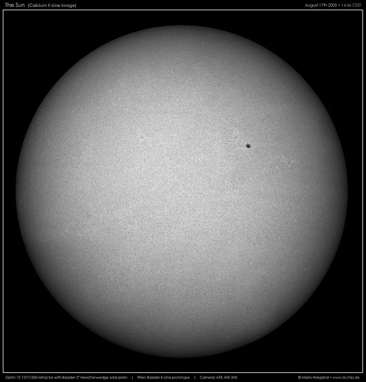 : Erste Versuche mit dem neuen K-Line-Filter von Baader! Man kann schon etwas vom Fackel-Netzwerk sehen. Dennoch dürfte bei den Aufnahmeeinstellungen was zu verbessern sein.