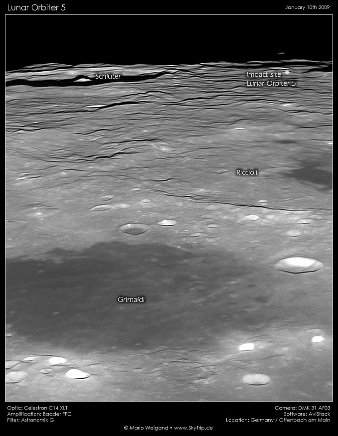 Lunar Orbiter 5 stürzte am 31. Januar 1968 auf den Mond, in der Nähe des Krater Schlüter Z.