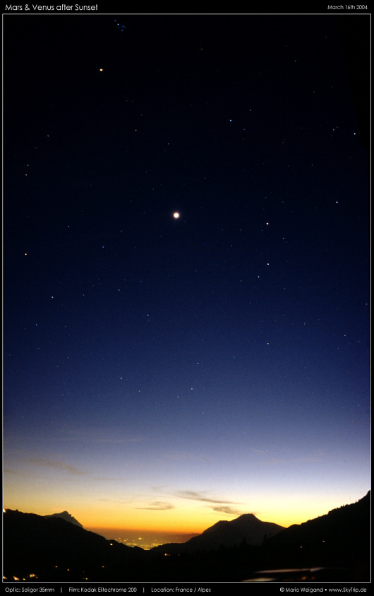 : Der farbenprächtige Abendhimmel des 16. März 2004 über den französischen Alpen mit der hellen venus und Mars.