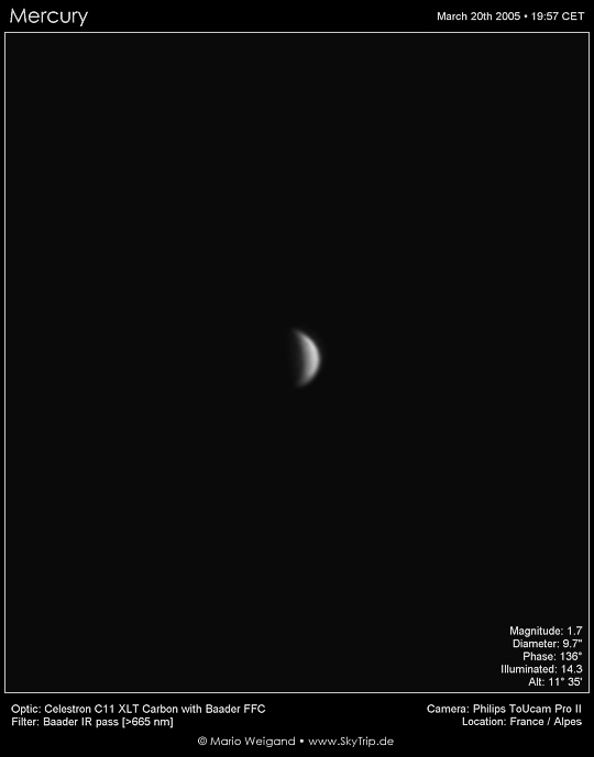 Am Vorabend war das Seeing leider viel zu schlecht. Hier zeigt sich schön die Phasengestalt – Merkur ist inzwischen zu einer
