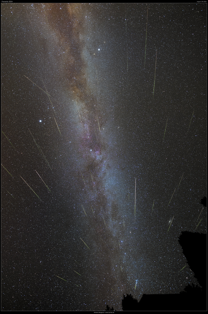 : In der Nacht vom 12. auf den 13. August 2024 hatte ich die Kamera mit dem 14 mm f/1,8 Sigma-Objektiv in Richtung Milchstraße gerichtet, um ein paar Perseiden zu erwischen. 47 Stück und ein "Querschläger" sind mir einige ins Netz gegangen.