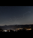 : Das Sternbild Skorpion ist trotz des niedrigen Standes hier in Mitteleuropa sicherlich eines der schönsten Sommersternbilder. Dieser Schnappschuss zeigt das Sommer-Sternbild, wie es gerade in der späten Dämmerung über den Alpen erscheint.