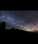 : Im April gibt der Sommerhimmel in der zweiten Nachthälfte eine kleine Vorschau: die Milchstraße erscheint wieder am Osthorizont. Hier erscheint sie über der Bergkulisse der französischenm Alpen.