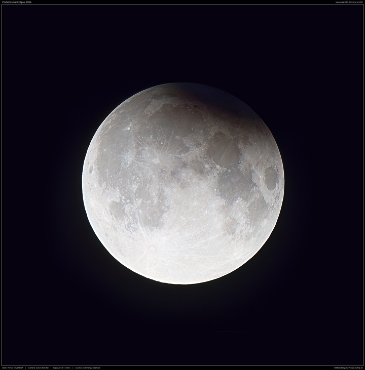 Kommentar: Die partielle Mondfinsternis (geringer Größe) vom 18. September 2024 fand unter für Beobachter in Deutschland brauchbaren Bedingungen statt.