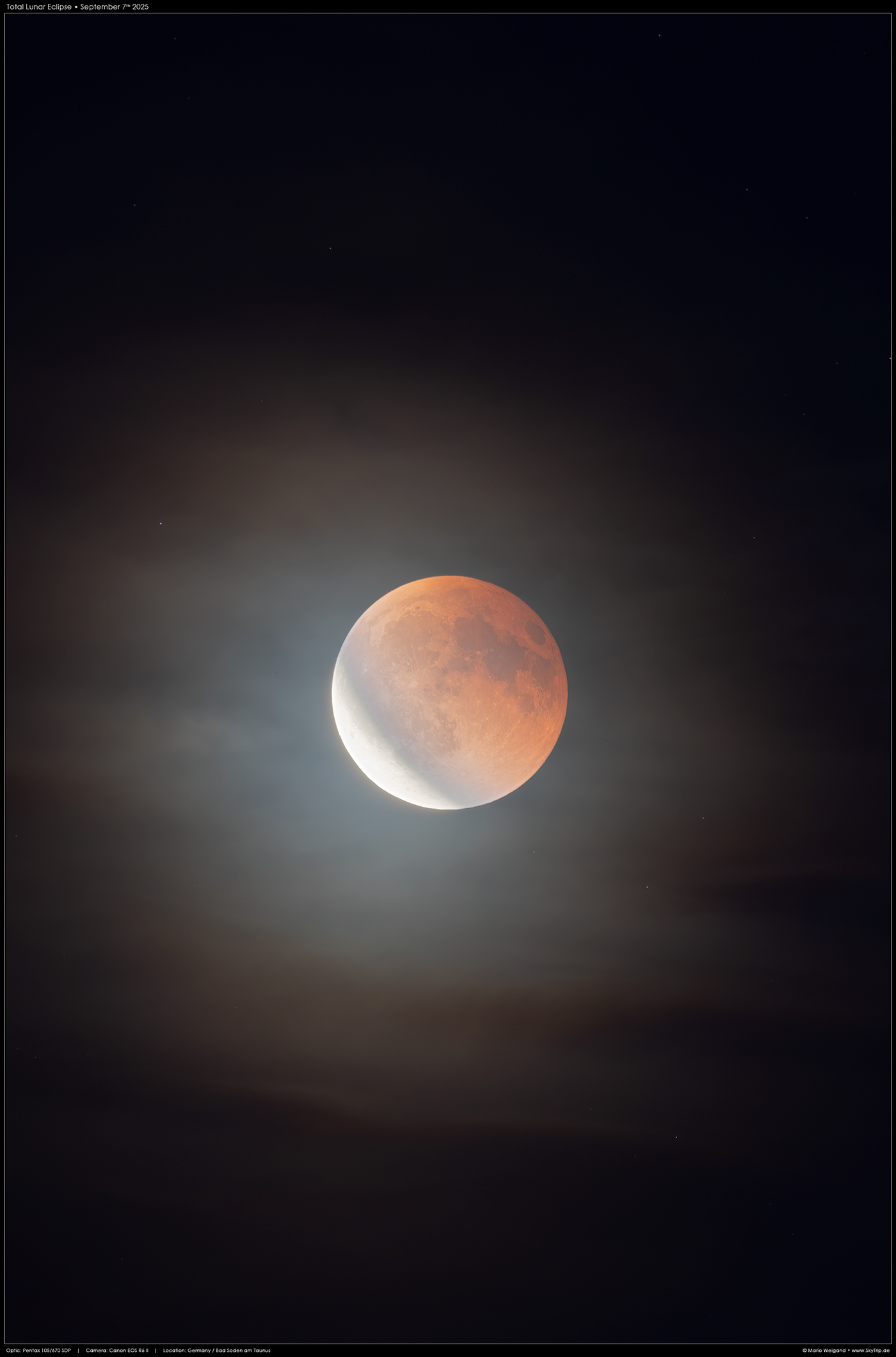 : Nicht lange nach der ersten Sichtung endete die totale Phase bereits. Der Teil des Mondes, der außerhalb des Kernschatten lag war zwar immernoch im Halbschatten, im Vergleich zum Kernschattenbereich aber trotzdem gleißend hell.