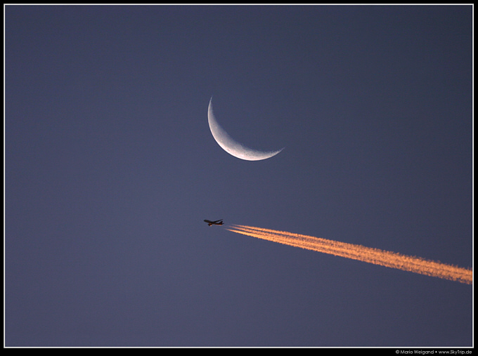 dennoch lag ich über eine Stunde auf der Lauer, bis eins dem Mond mal nahe kam. Entstanden ist das Bild in den Morgenstunden des 30. August mit der EOS 300D und dem 100-400 mm Zoom.