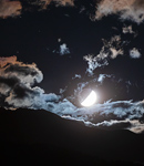 : Vielfältige Bewölkung sorgte am 14. April für einen stimmungsvollen Mondaufgang über den Alpen. Der Mond tauchte gerade hinter den Bergen nahe des Zentralmassivs in den Savoyer Alpen auf.