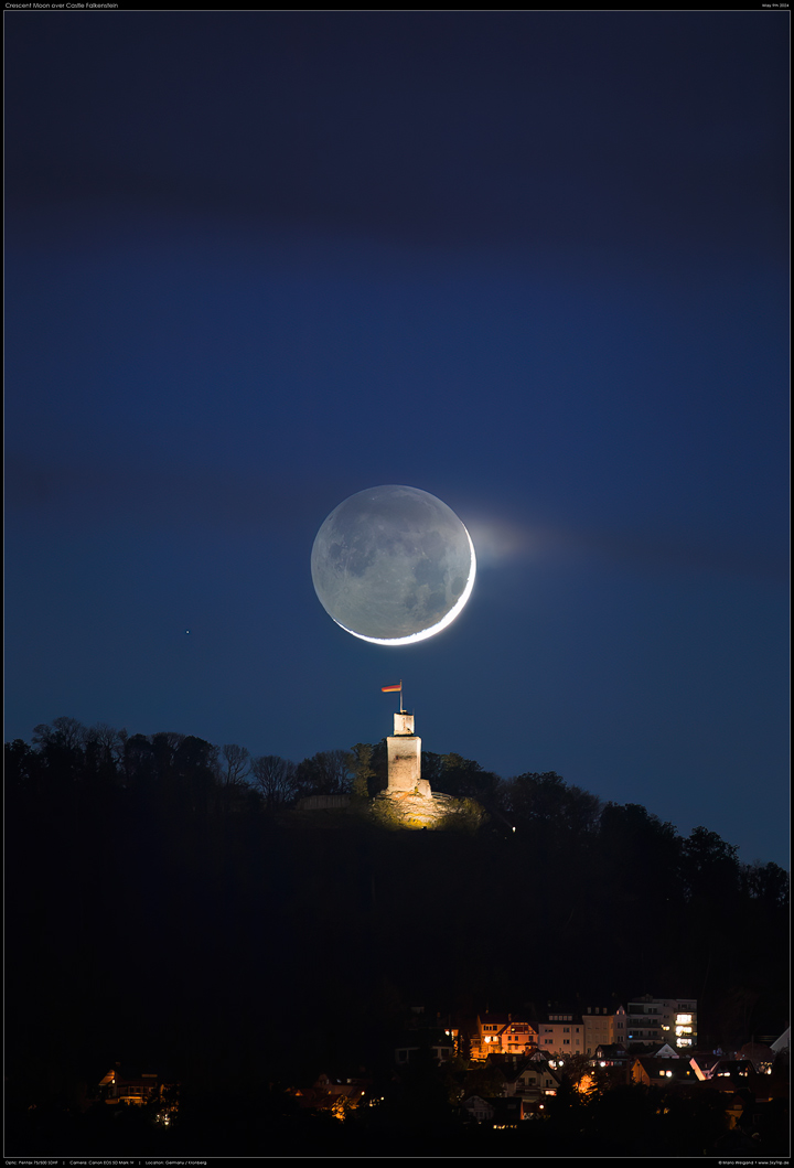 SkyTrip.de - Schmale Mondsichel über Burg Falkenstein