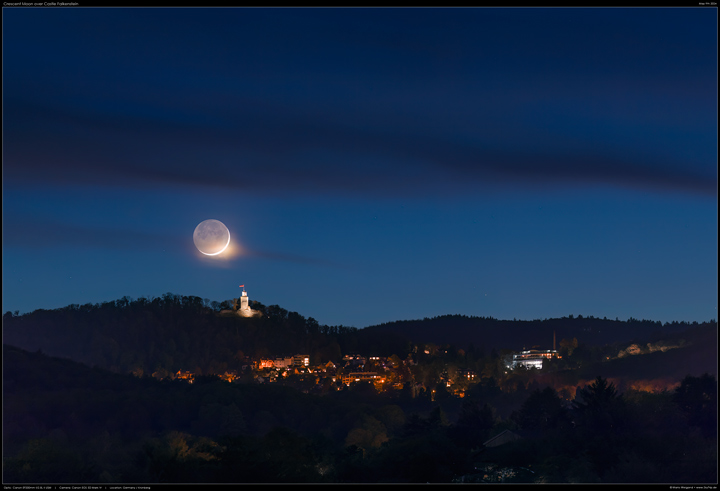 SkyTrip.de - Schmale Mondsichel über Burg Falkenstein