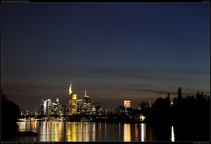 Ende April war es für die Venus soweit. Das Geschehen habe ich vom Mainufer aus festgehalten, mit der frankfurter Skyline als Kulisse.