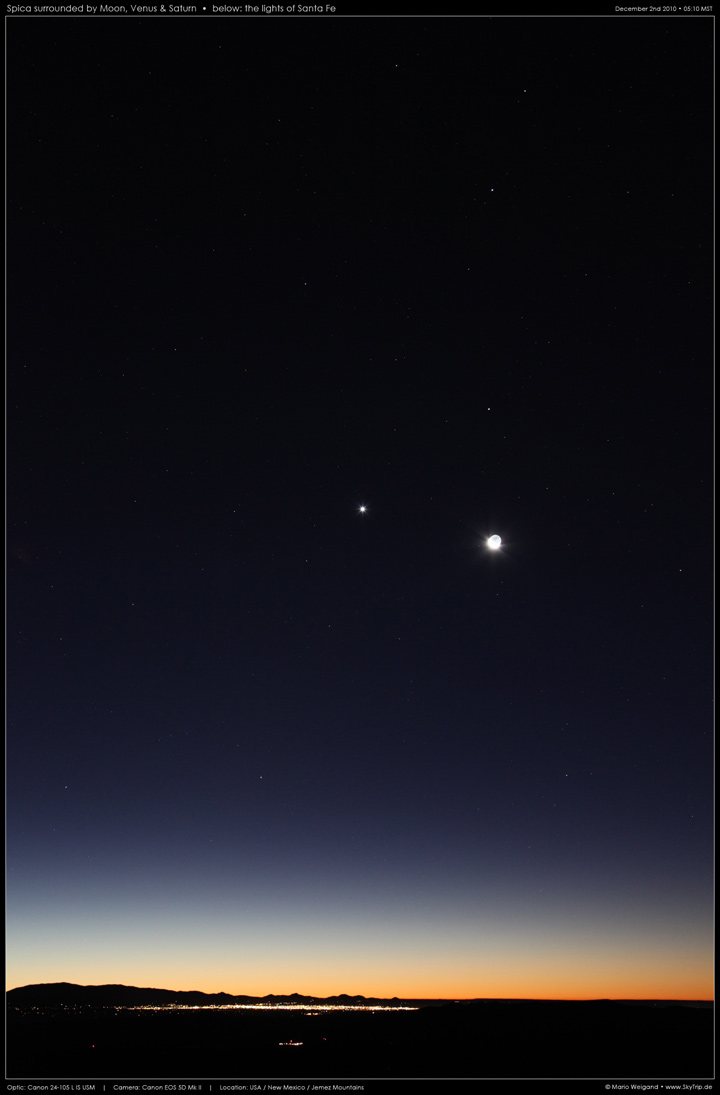 Kommentar: Am 2. Dezember 2010 konnte man die schöne Konstellation mit Spica, Saturn, Mond und Venus noch einmal beobachten.