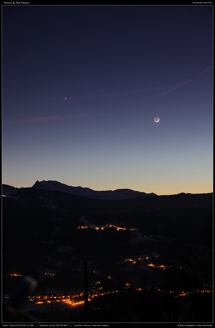 Kommentar: Einmal mehr bildeten der junge Mond und die helle Venus ein reizvolles Paar.