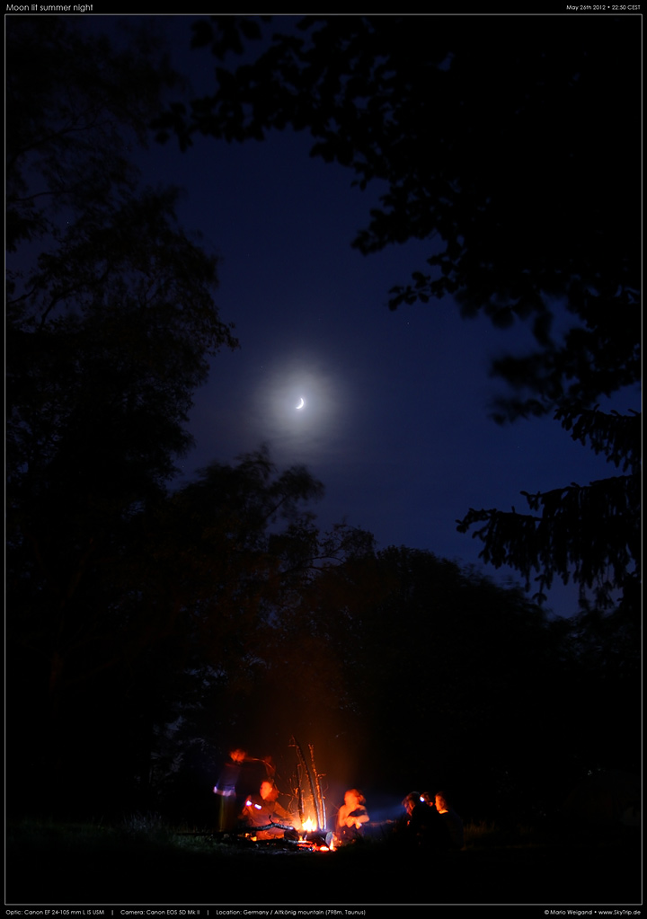 Am 26. Mai habe ich in der späten Dämmerung und bei Mondlicht eine solche Szene festhalten können.