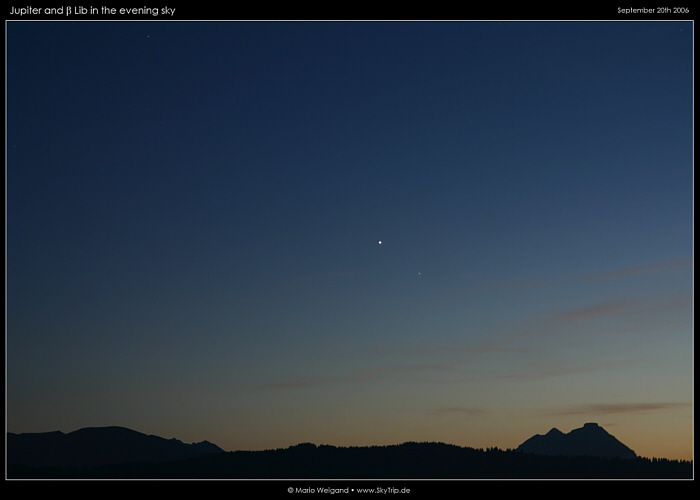 : Etwas mehr Brennweite zeigt Jupiter neben dem 2,75 mag-Stern α Lib: Zubenelgenubi.