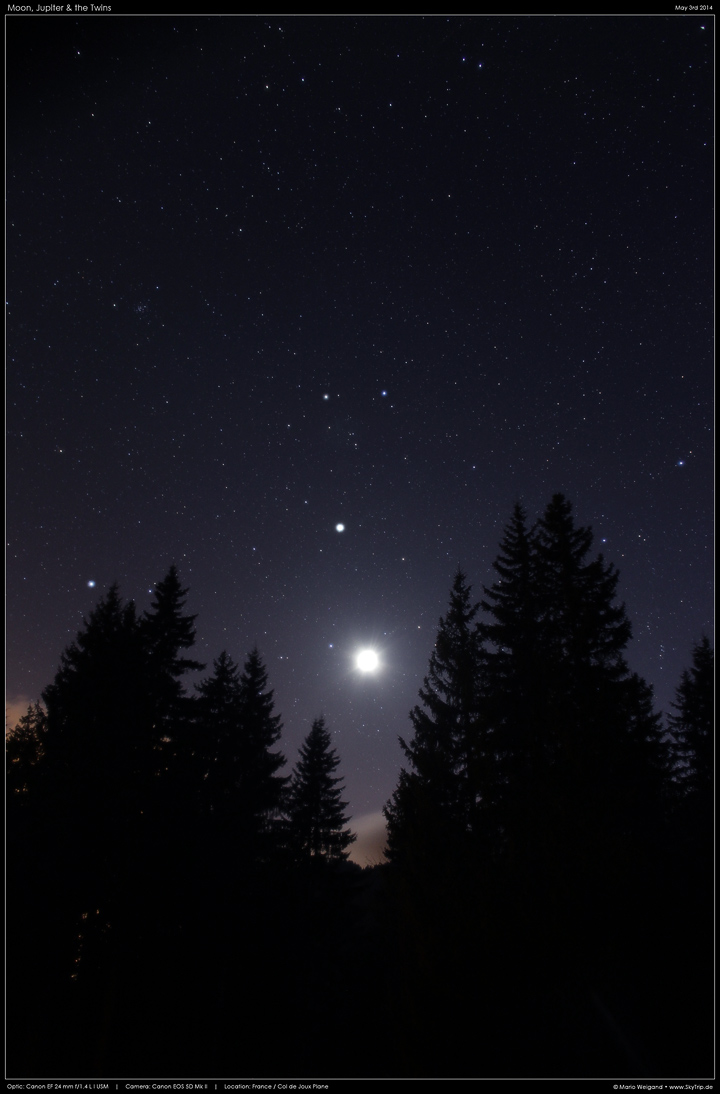 Am 3. Mai begegnete dort die junge Mondsichel dem Riesenplanet Jupiter, wie diese Aufnahme aus den französischen Alpen zeigt.