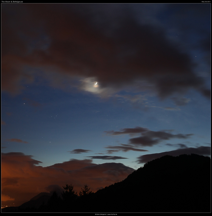 Kommentar: Der junge Mond am Abend des 2. Mai 2014, aufgenommen in den französischen Alpen.