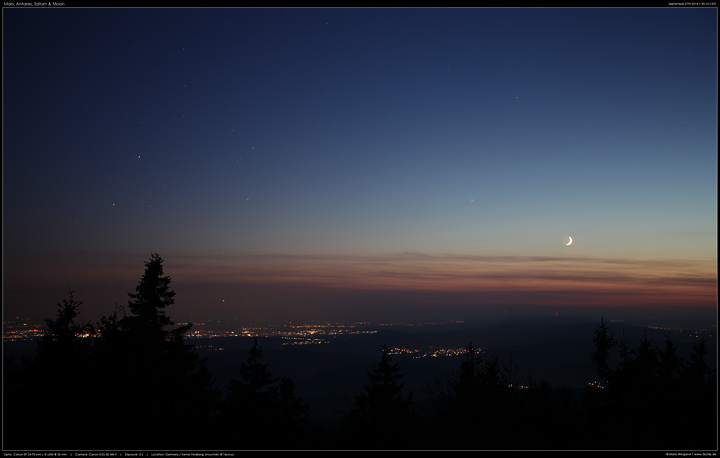 Weiterhin stand die schmale Mondsichel am Abendhimmel nahe Saturn.