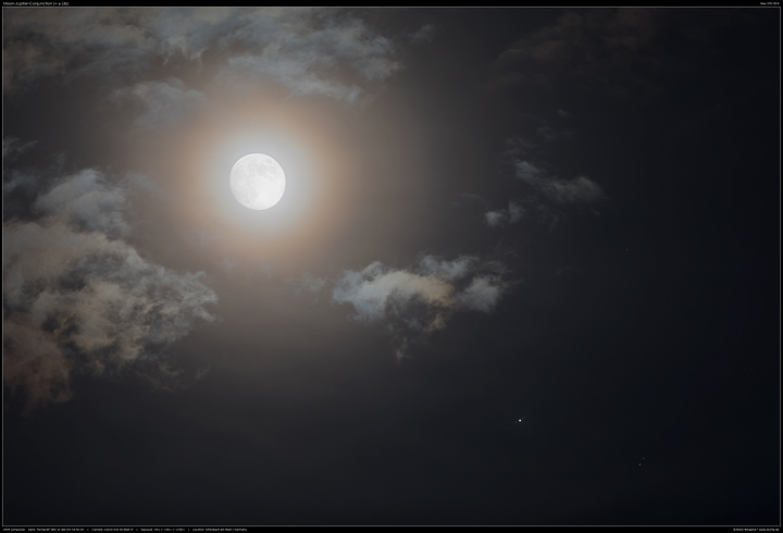 Am 27. Mai 2018 begegnete der fast volle Mond dem Riesenplanet Jupiter.