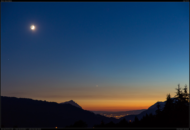 Mitte August bekam der Abendstern Besuch vom jungen Mond mit Erdschein.