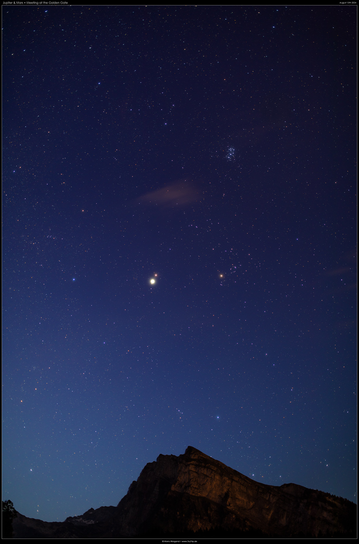 In den frühen Stunden des 13. August habe ich die enge Begegnung der Planeten Jupiter und Mars über den Alpen festhalten können.