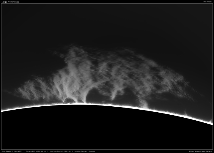 Kommentar: Am Westrand der Sonne türmte sich am 9. Mai eine recht große Protuberanz auf.