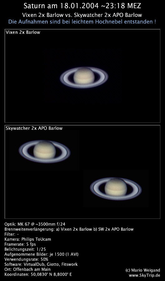 : Ein Vergleich zwischen der Vixen 2x-Barlow und der neuen Skywatcher 2x APO-Barlow! Leider bei leichtem Hochnebel...