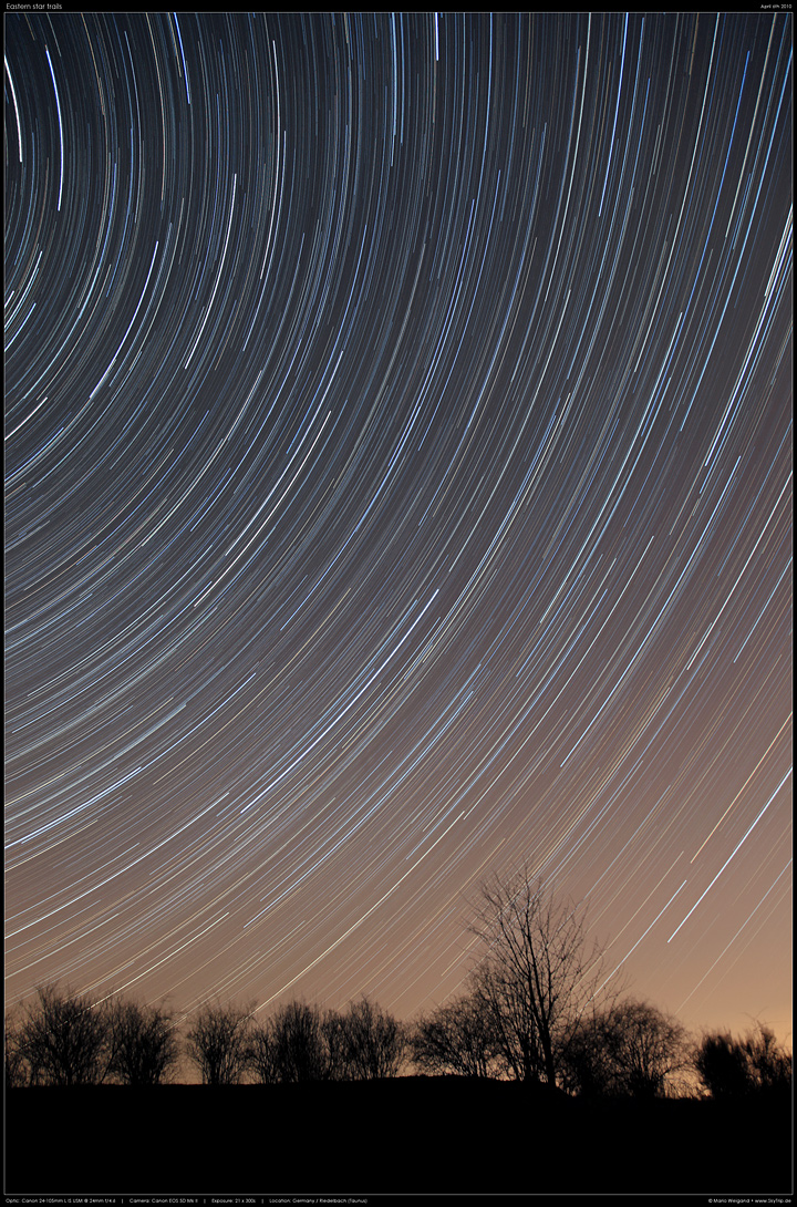 Kommentar: Diese 105-minütige Steifenaufnahme Richtung ENE zeigt, wie die Sommersternbilder am Horizont erscheinen.