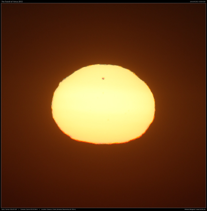 : Schleichend wurde mit zunehmender Höhe die Luft ruhiger, aber nach wie vor gelang kein Bild, auf dem die Sonnenscheibe scharf erscheint – scharf sind nur die Verzerrungen durch das schlechte Seeing.