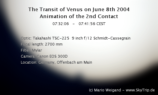 Venustransit: 07:32:06 bis 07:41:56 MESZ - Animation des 2. Kontakts