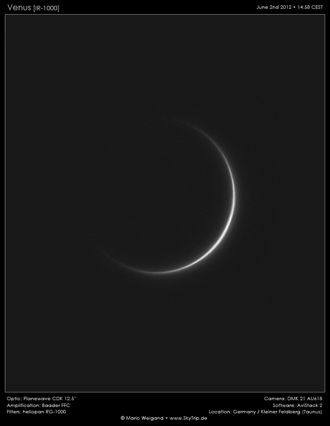 damit noch einmal eine Chance für ein Sichelbild. Das Seeing war allerdings äußerst schwierig zwischen den Wolken. Nur eine manuelle Vorselektion der