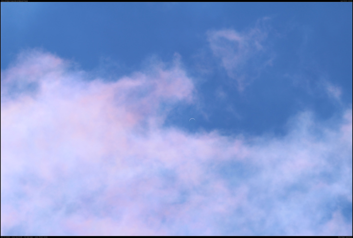 Am Taghimmel konnte ich die feine Sichel mit 0,91% Beleuchtungsgrad bei wechselner Bewölkung beobachten.