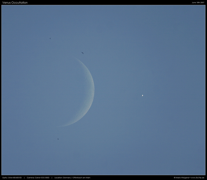 Kommentar: Das letzte Bild der Serie zeigt Venus und Mond zusammen mit ein paar Vögeln im Vordergrund.