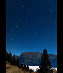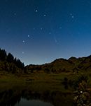 Mars-Jupiter-Konjunktion — In den frühen Stunden des 13. August habe ich die enge Begegnung der Planeten Jupiter und Mars über den Alpen festhalten können. Der Winkelabstand der beiden betrug nur ca. 48' und sie standen im Sternbild Stier unweit des goldenen Tors der Ekliptik.