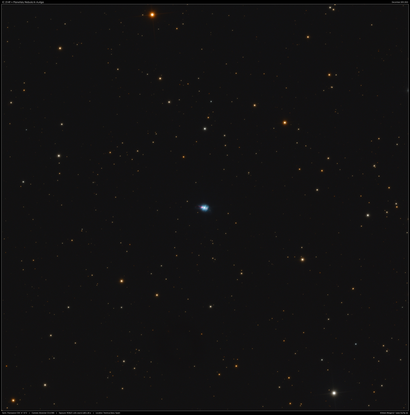Kommentar: IC 2149 ist ein kleiner (12''), heller planetarischer Nebel im Sternbild Auriga.