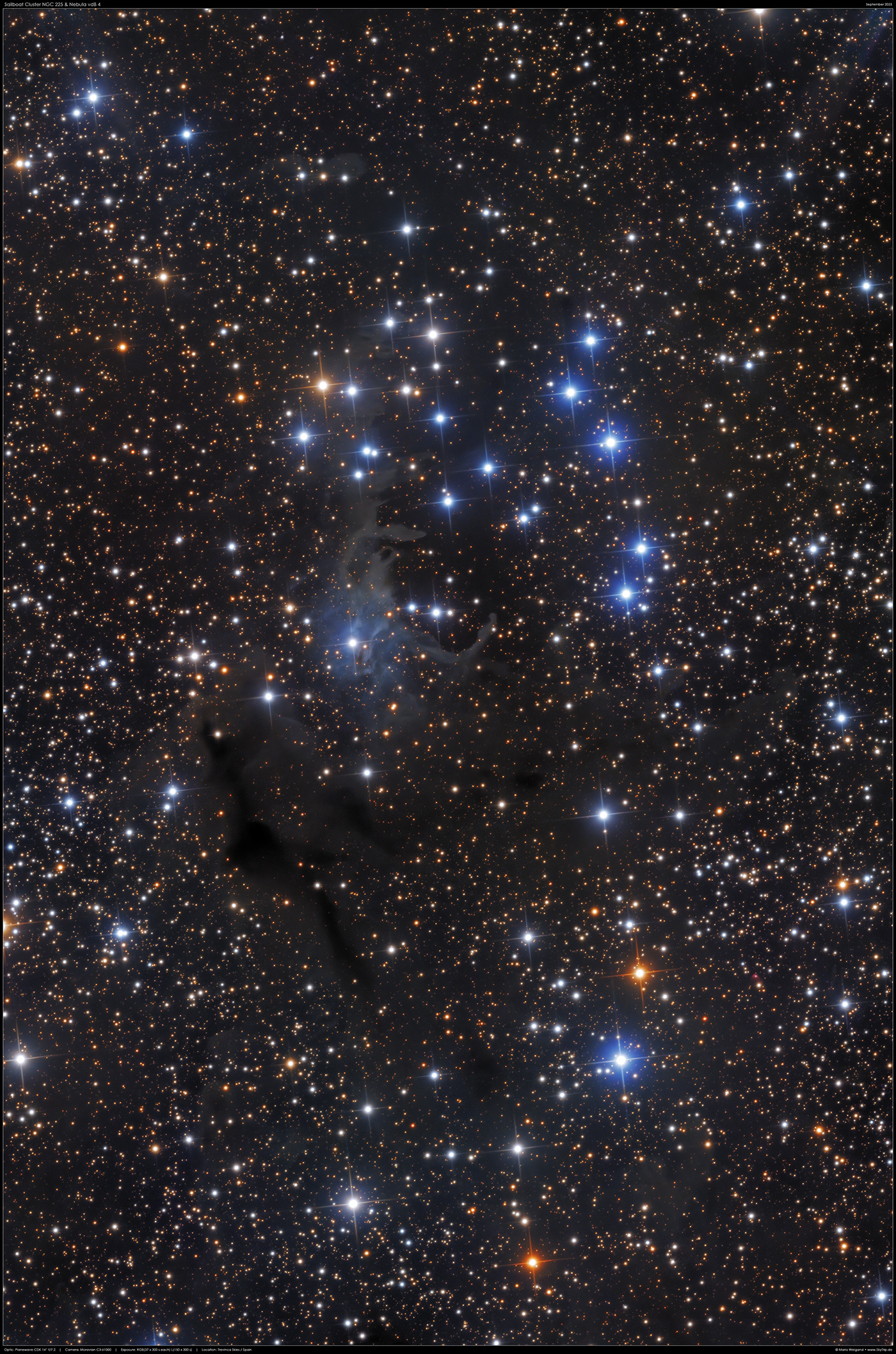NGC 225 ist einer der weniger auffälligen Vertreter der über 100 offenen Sternhaufen im Sternbild Cassiopeia.