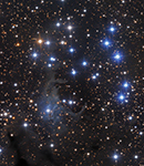 Sharpless 140 & Pismis-Moreno 1 — Der Sternhaufen Pismis-Moreno 1 im Sternbild Cepheus ist von Wolken aus Staub und Gas umgeben. Die Strahlung der jungen Sterne ionisiert das Gas und bringt es zum Leuchten, was die Ursache für den Emissionsnebel Sh2-140 ist. Highlight des Motivs ist eine Ionisationsfront an der Grenze zur Dunkelwolke LDN1204, die ebenfalls von dem Sternhaufen erzeugt wird.