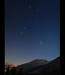 Mars-Jupiter-Konjunktion — In den frühen Stunden des 13. August habe ich die enge Begegnung der Planeten Jupiter und Mars über den Alpen festhalten können. Der Winkelabstand der beiden betrug nur ca. 48' und sie standen im Sternbild Stier unweit des goldenen Tors der Ekliptik.