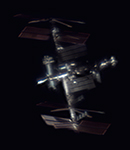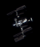 Man blickt optimal auf die zentrale Anordnung aus den russischen und amerikanischen Modulen.
