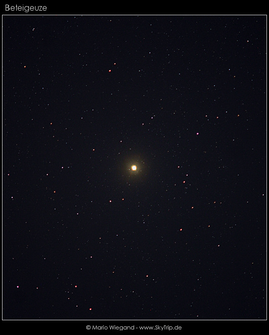 Kommentar: Betelgeuse / Beteigeuze ist neben Rigel einer der dominierenden Sterne des Orion, beide sind auch bekannt als Alpha und