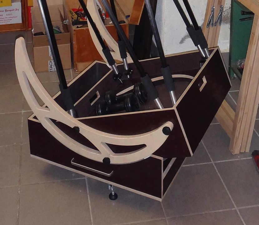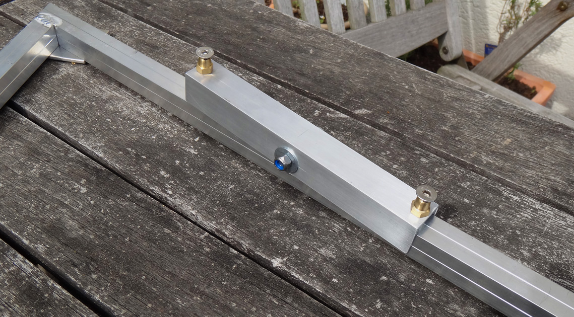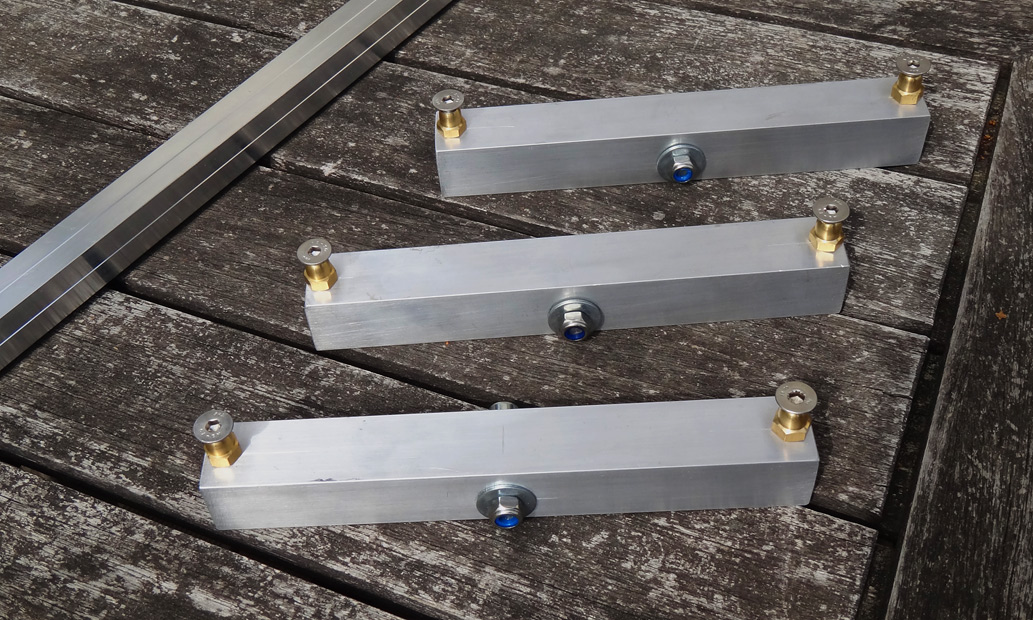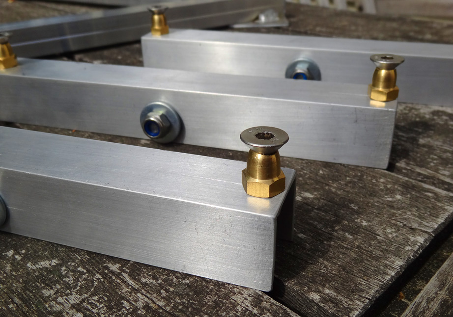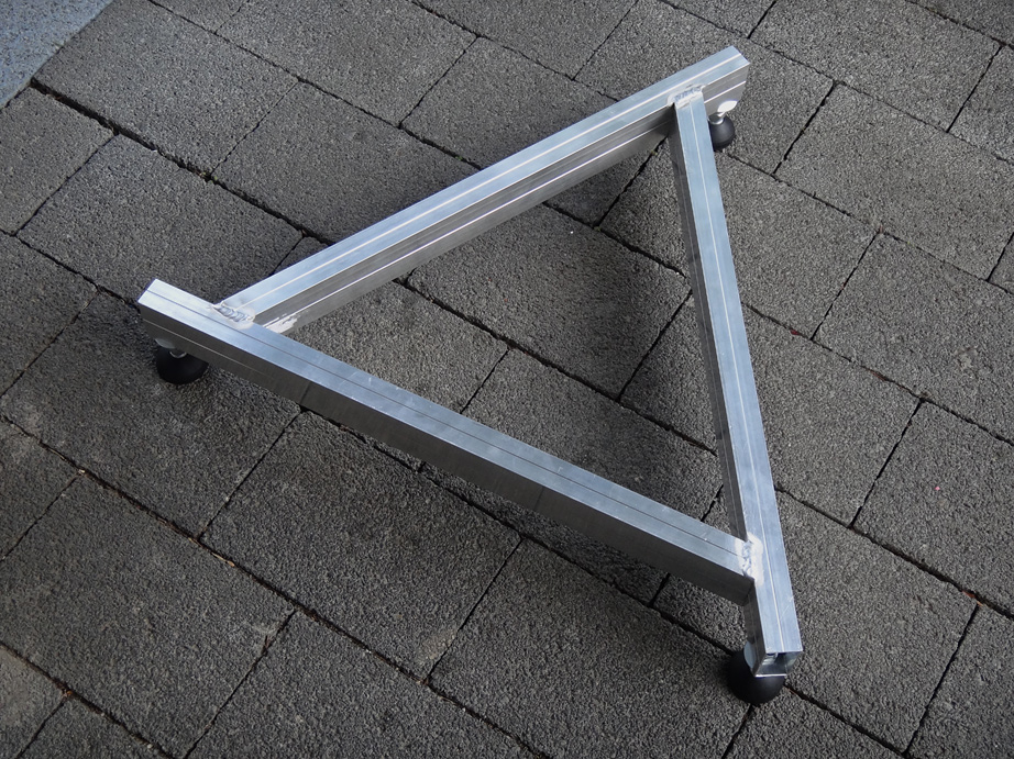Alu-Hohlprofile mit 20 x 40 mm wurden zu einem Dreieck verbunden und an den Ecken mit Maschinenfüßen versehen.