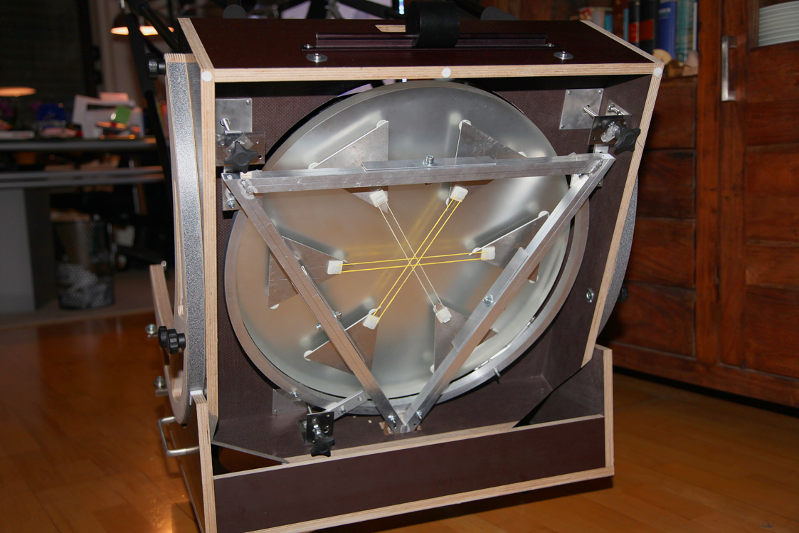 und es sollten 50 cm, also 20 Zoll Haupspiegeldurchmesser werden. Timm baut aber nicht nur leichte Teleskope, sondern auch sogenannte Lowrider-Dobsons