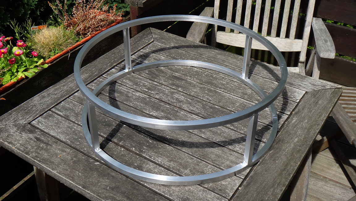 Zunächst wurden hohle Alu Vierkantprofile mit den Maßen 15x15x2 mm zu zwei identischen Ringen gebogen.