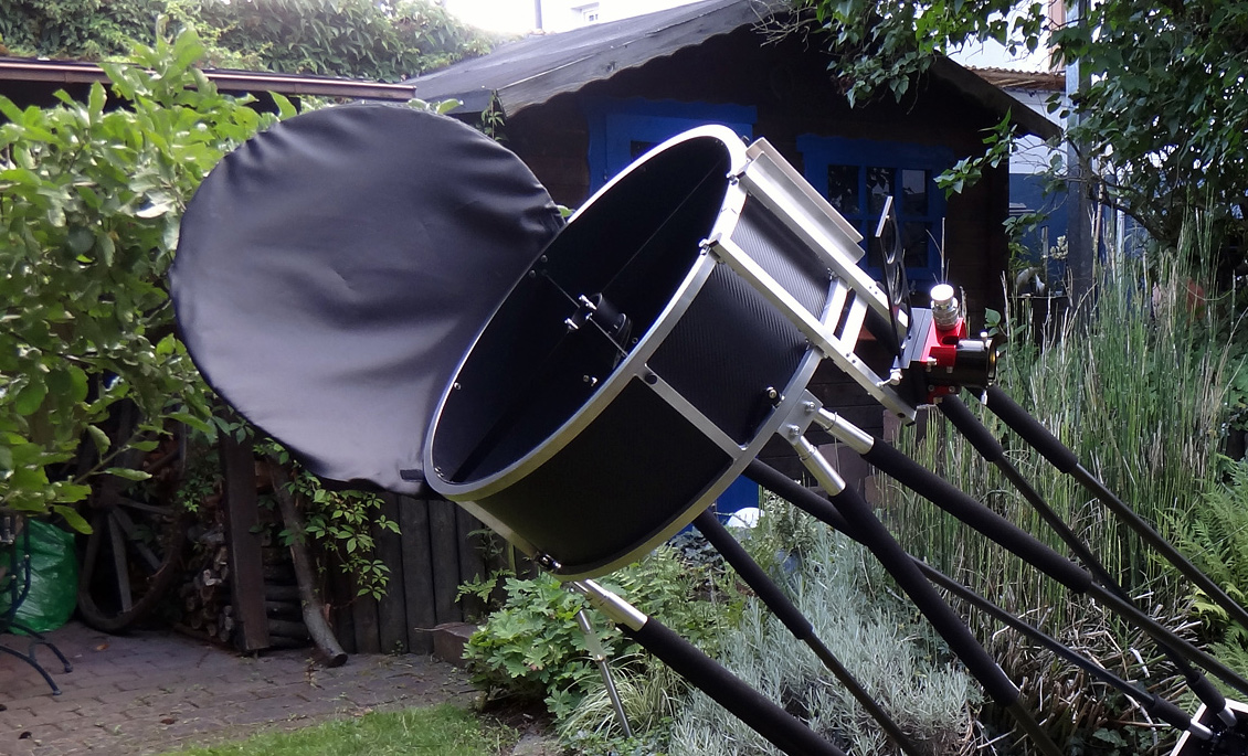 Das Resultat ist ein 20" f/4 Lowrider-Dobson in Gitterbauweise mit nur etwa 30 kg Gesamtgewicht und mit einer Gesamthöhe von 190 cm.