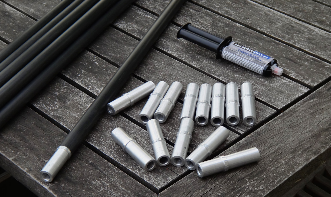 Der Stangentubus besteht aus acht 20 mm Kohlefaserrohren mit cm Länge. An den Enden wurden mit einem Spezialkleber Endstutzen aus Aluminium eingeklebt.
