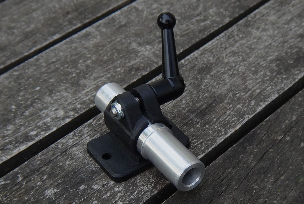 können am Hut mit einem Schnellspann aus dem Fahrradbedarf geklemmt werden. Alle Stangen zusammen wiegen nur 1,6 kg.