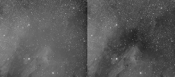 Das bedeutet, dass schwache Objekte stärker aufgehellt als hellere. Dies fördert jedoch auch die kleinen Fehler in den Bildern zutage.